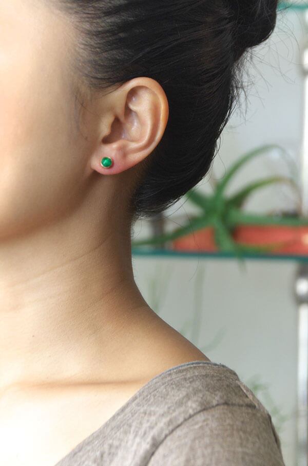 一見、コロンと丸い宝石に見えますが、細やかなカットが施してあるため光を受けてキラキラと輝きます。
